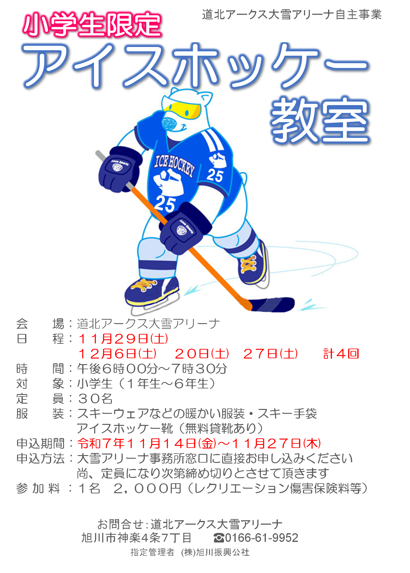 小学生限定「アイスホッケー教室」(全4回)を開催します