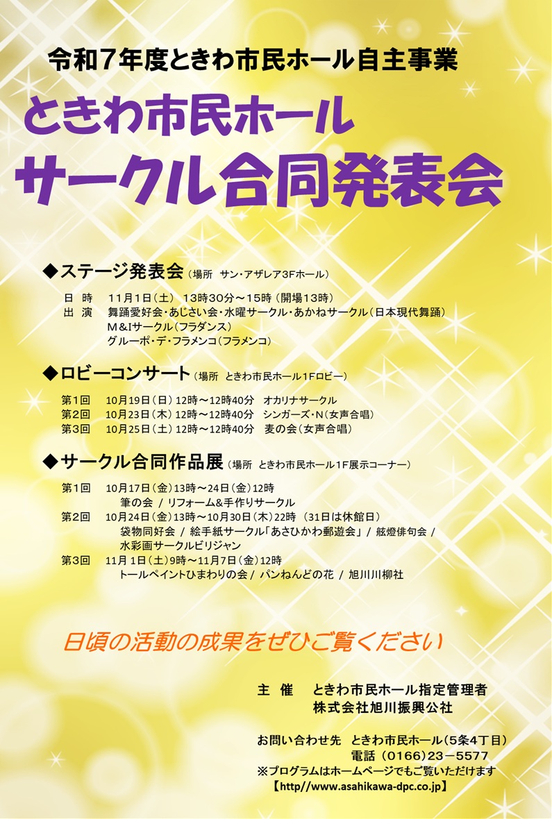 令和7年度ときわ市民ホール自主事業「サークル合同発表会」を開催いたします。